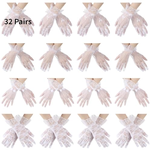 32 Pairs Lace Gloves Women Tea Party White Lace Gloves with Bow, Vintage Glove for Formal Events, Opera, Church, Masquerade, Photo Shoots, 11 in Long 1