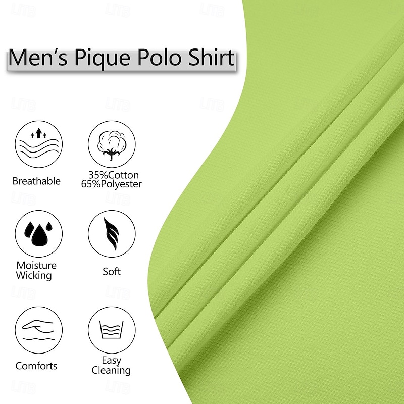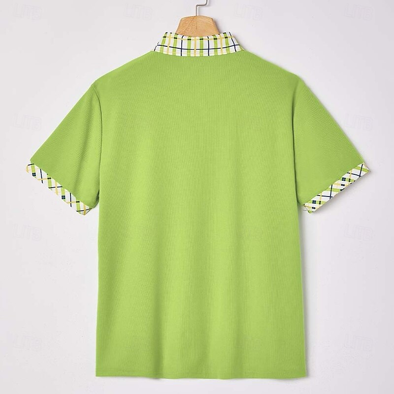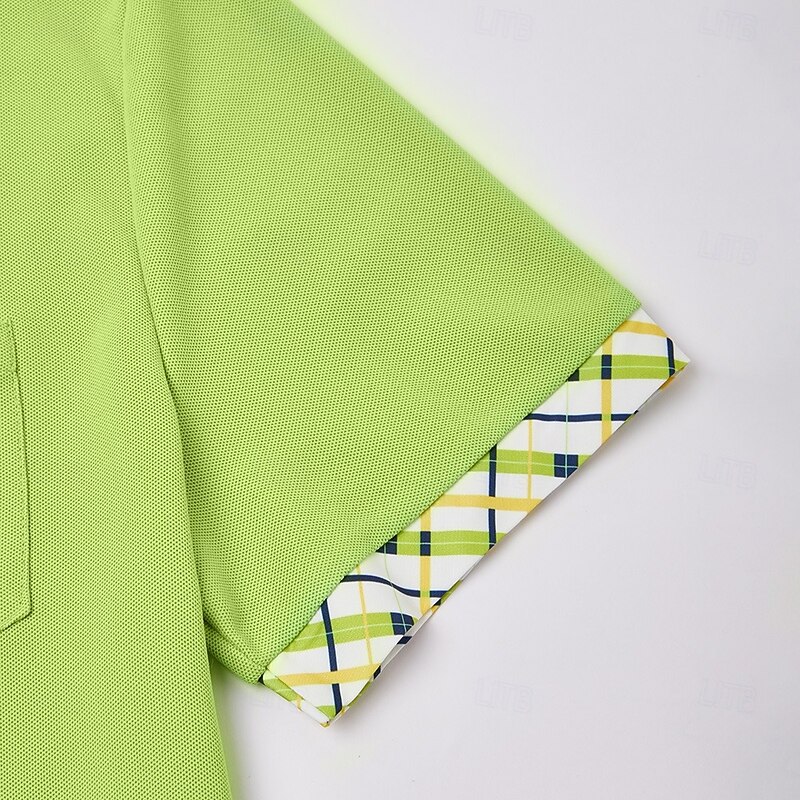 More information about Men's Golf Shirt Pique Polo Shirt Business Casual Ribbed Polo Collar Short Sleeve Fashion Basic Plaid Color Block Buttons Logo Summer Spring Spring & Fall Regular Fit Yellow Dark Blue Green Golf