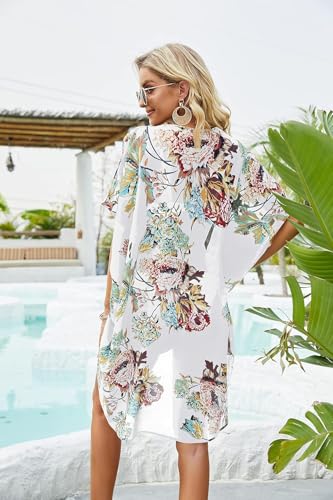 Women's Floral Print Puff Sleeve Kimono Cardigan Loose Cover Up Casual Blouse Tops Oversized Beach 4