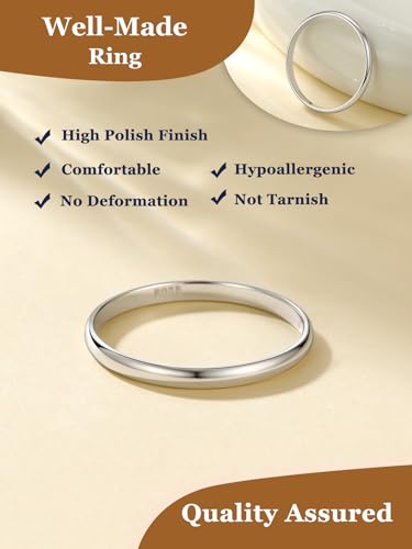 • 🎉 2MM BAND RING 🎉 -- Solid 925 stamped sterlings silver delicate thin band rings plated with real platinum to avoid silver oxidation. The ring is smooth, well made, and very shiny. Comfort fit size 4-15.