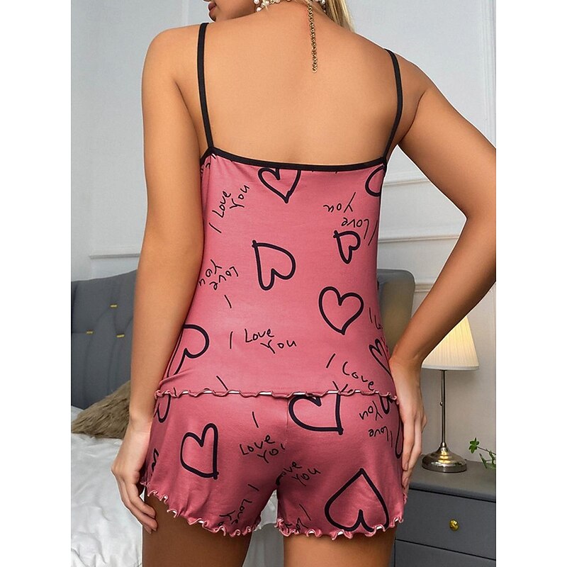 More information about Women's Valentine Pajamas Sets Heart Fashion Comfort Home Valentine's Day Daily Satin Silk Breathable Straps Sleeveless Strap Top Shorts Backless Elastic Waist Summer Spring Home Outfits
