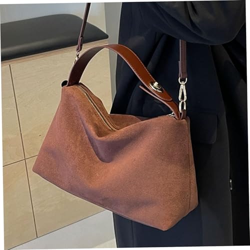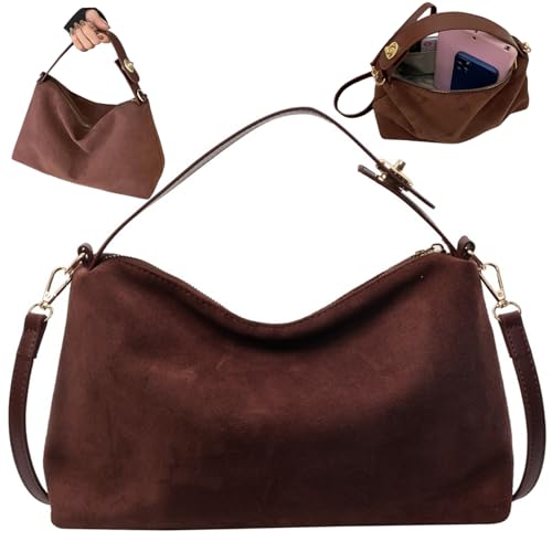 HOT ! Suede Purse, Suede Bag 11 x 5 x 8 Slouchy Zipper Suede Tote Bag Dark Brown Suede Handbag with Adjustable Strap Lightweight Crossbody Shoulder Bag for Women Girls, Suede Tote Bag