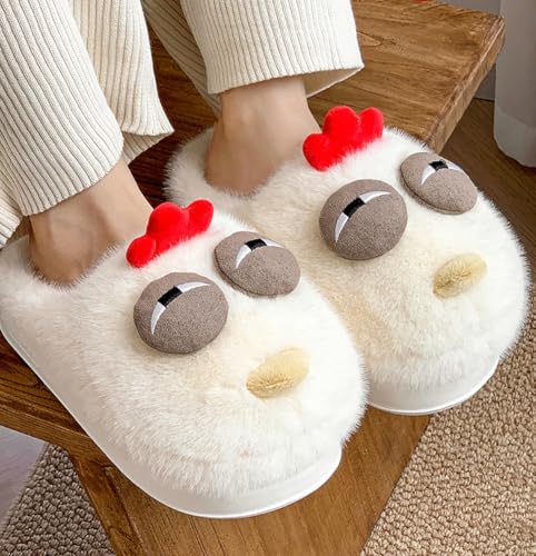 Funny Chicken Plush Slippers Winter House Shoes with Memory Foam Non-Slip Cartoon Indoor Outdoor Slippers Thick-Sole 7