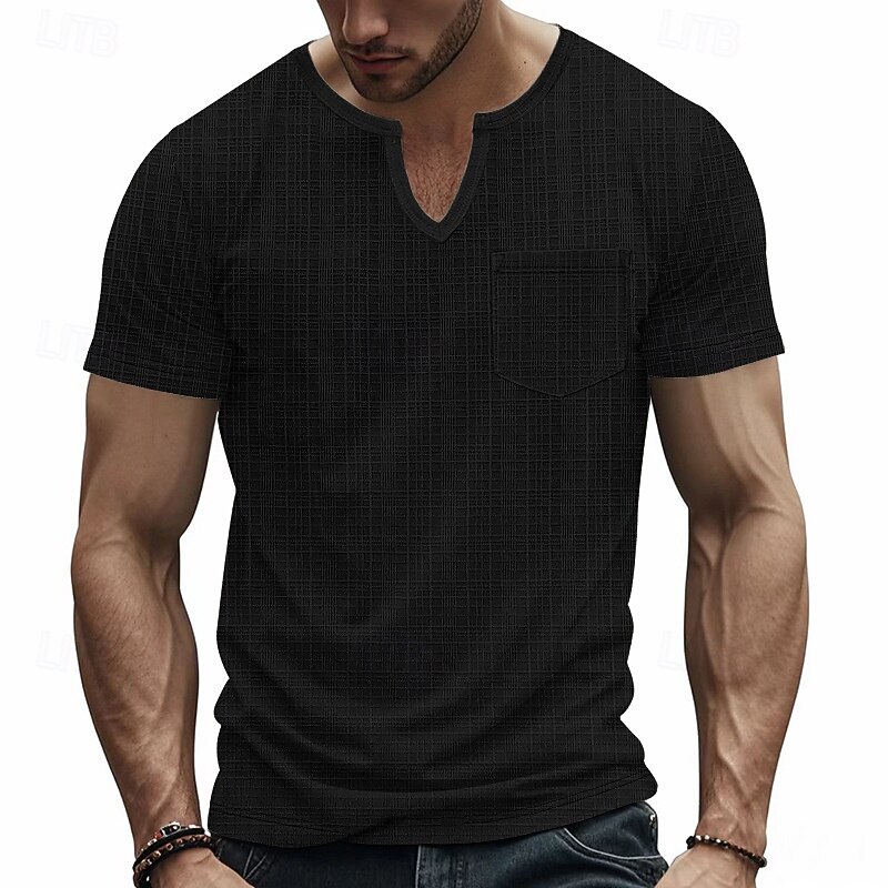 Men's Tee Short Sleeve Shirt Tee Top Short Sleeve V Neck Spring &  Fall Plain Fashion Designer Sexy Vacation Street Going out Navy Black White Top Tee for Men 15