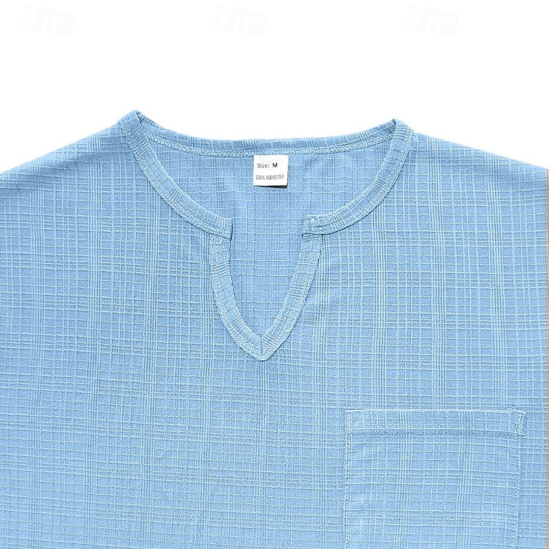 Highlights - Made of high-quality polyester - Features short sleeves for added comfort - Specifically designed for men - Perfect for vacation wear - Stylish V-neckline adds a touch of sophistication