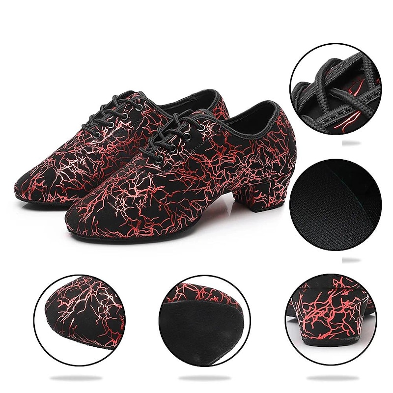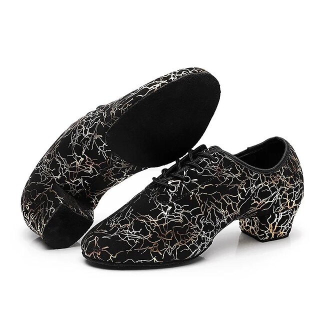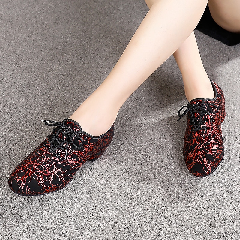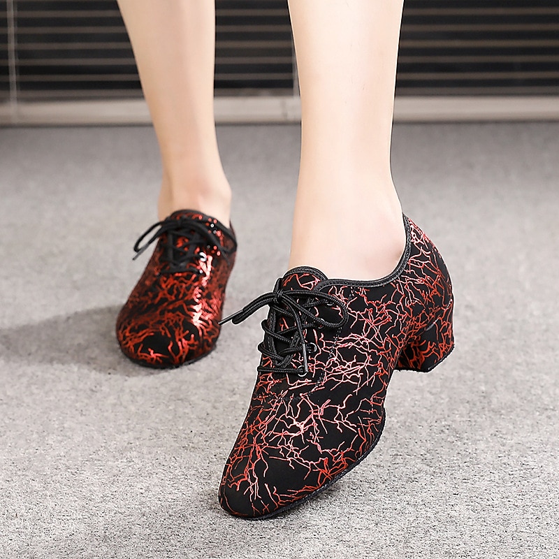 Highlights [Fabric and Fit] : These women's sparkling ballroom dance shoes are made from high-quality PU leather, offering a sleek fabric with a shimmering metallic pattern. Their low Cuban heel provides a comfortable fit, perfect for long hours on the dance floor without compromising on style or comfort. The lace-up closure ensures a secure and adjustable fit, making them ideal for various foot shapes. [Design Highlights] : The shoes feature a unique embellishment with a delicate floral design that adds a touch of femininity and sophistication. The closed lace-up design not only enhances stability but also contributes to the dynamic and elegant appearance of the shoes. The round toe shape accommodates natural foot movements, while the soft suede sole enables smooth gliding and effortless turning. [Occasions] : These dance shoes are perfect for ballroom and Latin dance competitions, as well as dance practice sessions and parties. Whether performing on stage or engaging in training, their elegant design and functional features make them suitable for a variety of dance-related events. [Sizes Available] : Available in a range of sizes from US5 to US11.5, these shoes cater to adult women looking for stylish and comfortable dance footwear. For individuals with wider feet, choosing a size up is recommended to ensure a perfect fit.