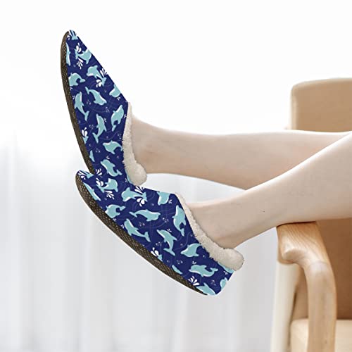 Cute Dolphin Women Closed Back House Slippers, Cartoon Dolphin Womens Mens Winter Indoor Slippers, Soft Cozy Warm Fuzzy Memory Foam Anti-Slip Slippers 1