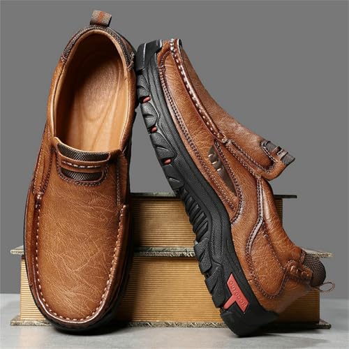 Mens Handmade Leather Slip On Casual Loafers for Men Retro Round Toe Non Slip Breathable Boat Shoes for Driving Walking Business Working Office 7