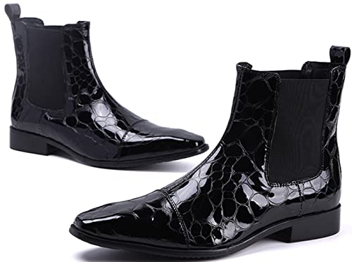 Santimon Mens Chelsea Boots Casual Dress Mid Top Boots Plain Toe Genuine Leather Snakeskin Texture Cowboy Boots Fashion Prom Wedding Tuxedo Party Ballroom Rock Singer Disco Western Boots for Men 7