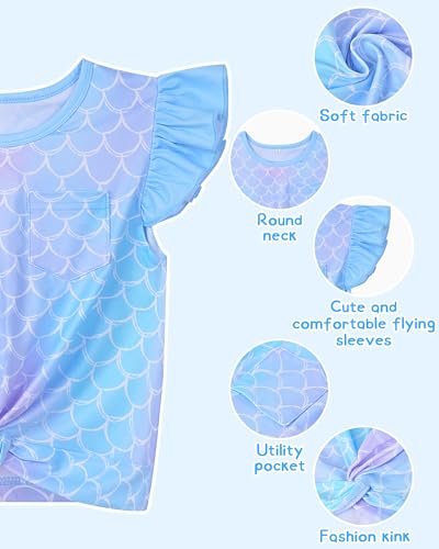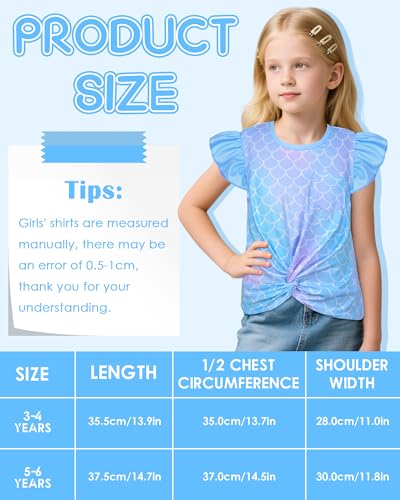 • Cute Shirt for Girls: This cute short sleeve shirt for girls features flutter sleevesand a twisted front design, adorned with charming unicorns or mermaid patterns. This front - twisted top for girls is irresistibly cute and your girls will definitely love it