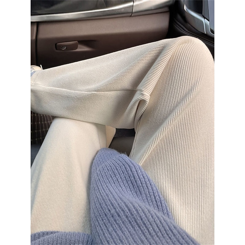 Highlights [Fabric] : Crafted from premium polyester, these women's pants are designed to provide warmth and comfort during the fall and winter seasons. The micro-elastic fabric ensures both softness and flexibility, making them ideal for various activities. [Fit] : The high-waisted, wide-leg design offers a relaxed and flattering silhouette, accommodating a variety of body shapes. This regular fit provides both style and ease of movement, perfect for casual wear. [Design Highlights] : Featuring practical elements such as pockets and an elastic waistband, these pants combine functionality with fashion. The straight-leg, baggy cut accentuates a modern look, suitable for streetwear enthusiasts. [Occasions] : Perfect for vacations, daily outings, or casual streetwear, these pants are versatile enough for both indoor and outdoor activities. Whether you're heading out for a day in the city or enjoying a laid-back weekend, they offer a blend of comfort and style. [Sizes] : Available in a range of sizes from M to 2XL, ensuring a suitable fit for different body types. Choose from classic black or light beige to complement your wardrobe.