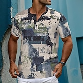 More information about Men's Geometric T Shirt Henley Shirt Short Sleeve Designer Retro Vintage Street Casual Daily Summer Spring Gray Henley Henley T-Shirt