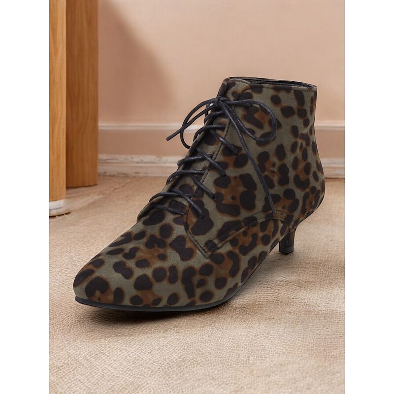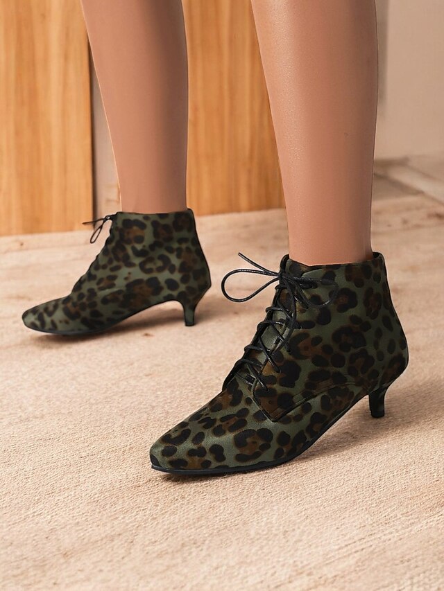 Green Leopard Print Lace-Up Ankle Boots with Kitten Heel – Chic Retro Style Shoes for Women 10