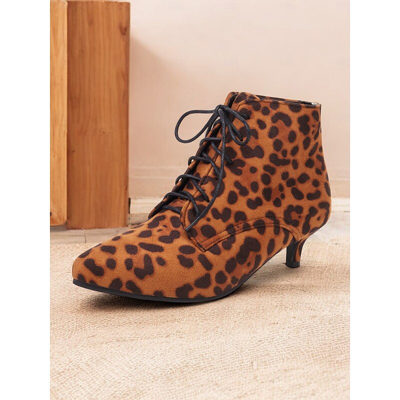 Green Leopard Print Lace-Up Ankle Boots with Kitten Heel – Chic Retro Style Shoes for Women 6