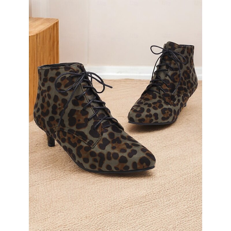 Green Leopard Print Lace-Up Ankle Boots with Kitten Heel – Chic Retro Style Shoes for Women 1