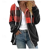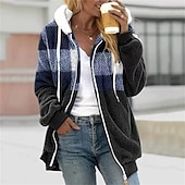More information about Women's Casual Jacket Comfortable Breathable Zipper Pocket Casual Plaid Vacation Street Casual Daily Wear Zipper Short Hooded Regular Fit Long Sleeve Outerwear Black Red Blue Spring Fall
