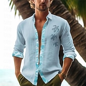 More information about Men's Color Block Tropical Turtle Summer Hawaiian Shirt Aloha Shirt Printed Shirts Long Sleeve Shirt Turndown Hawaiian Daily Wear Going out Weekend Black White Pink S M L