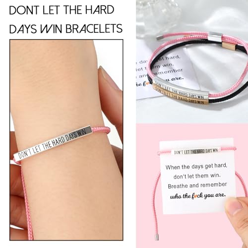 • Inspirational Words: engraved with the motivational message [don't let the hard days win], it serves as a tangible reminder to maintain a positive attitude on life; It's more than just an adjustable rope memorial bracelet, it's a daily dose of optimism and courage on your wrist
