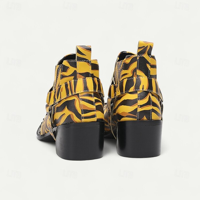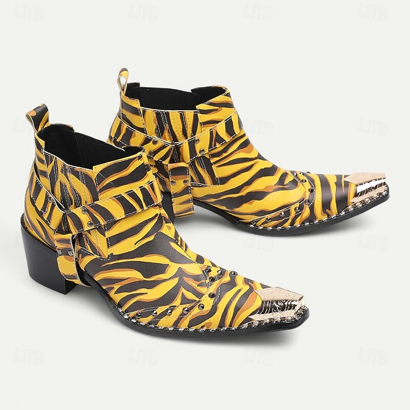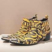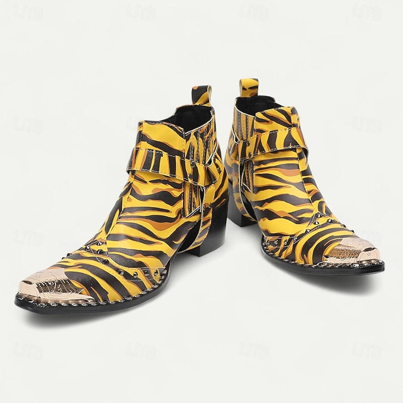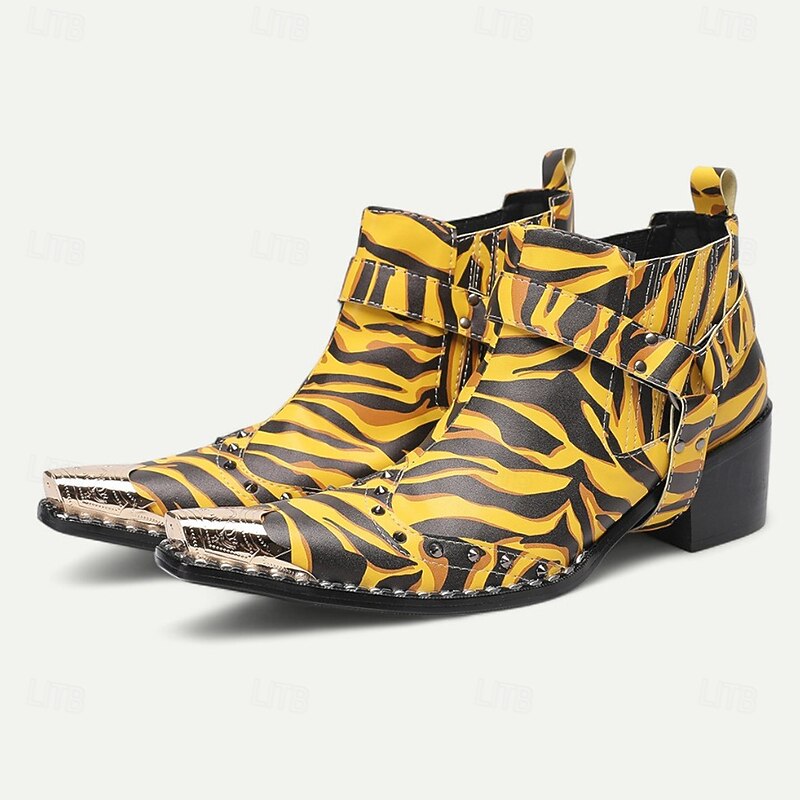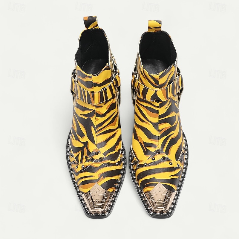 More information about Men's Yellow Tiger Print Boots - Eye-catching Cowhide Leather Boots with Striking Pattern for Bold Fashion - Perfect for Statement Wear and Parties