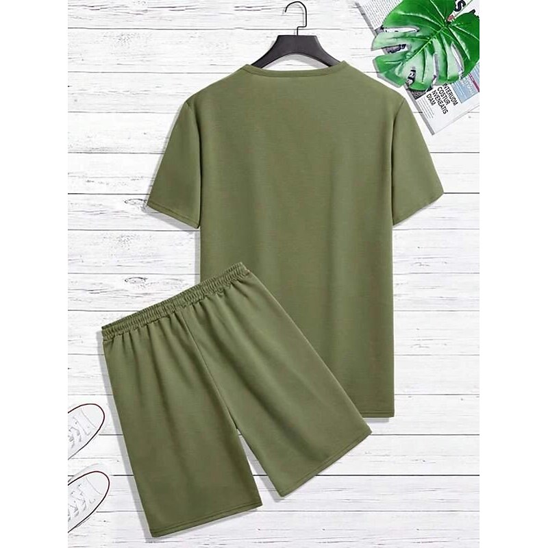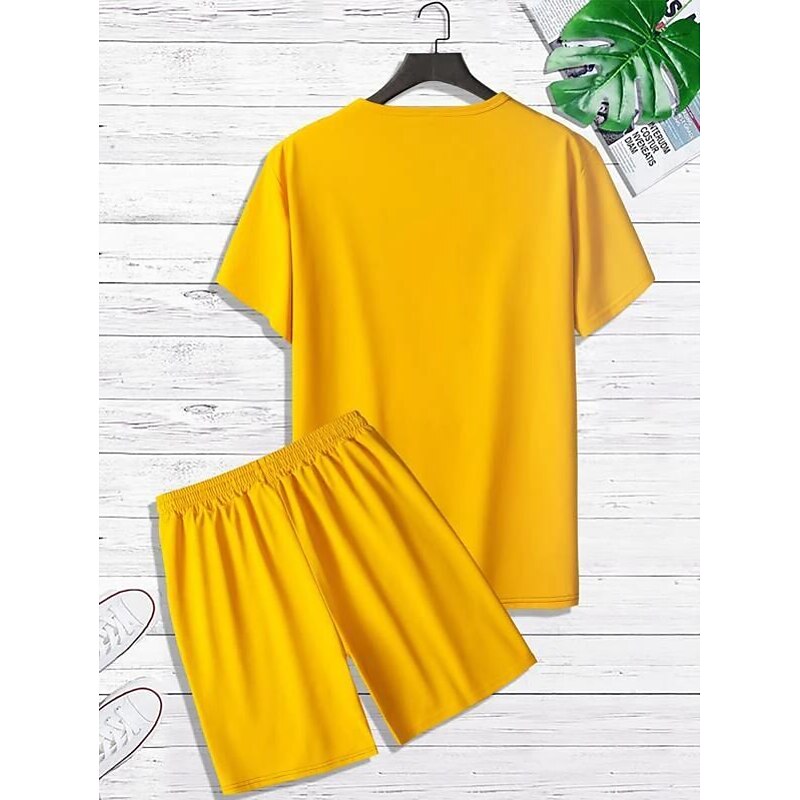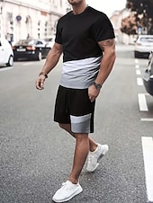 More information about Men's T-shirt Suits Tee & Drawstring Waist Pants Short Sleeves Crew Neck Summer Gymnatics Casual Color Block Street Style Vacation Daily Wear Activewear Army Green Black Yellow Top Tee for Men
