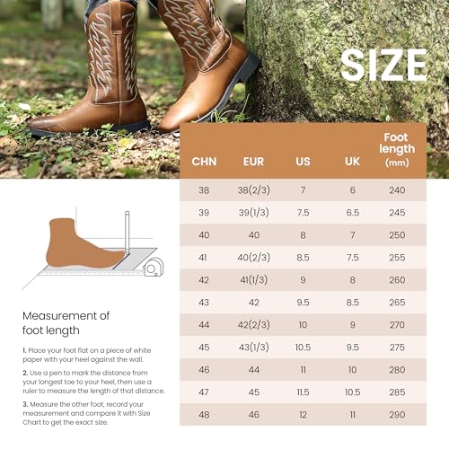 • This classic western boots carefully used the high quality faux leather.Men's cowboy boots with a non-slip durable sole provides stability and good grip, which keeps your balance at all time.