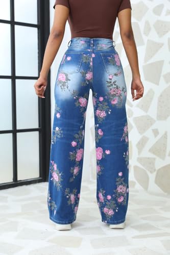 More information about chouyatou Women's Y2K Wide Leg Floral Printed Jeans High Waisted Button Down Baggy Denim Pants