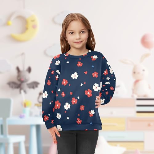 JUNZAN Retro Colorful Flowers Navy Blue Big Boys Sweatshirts Hoodies Crewneck Tops Clothing Shirts Camping 4T 5