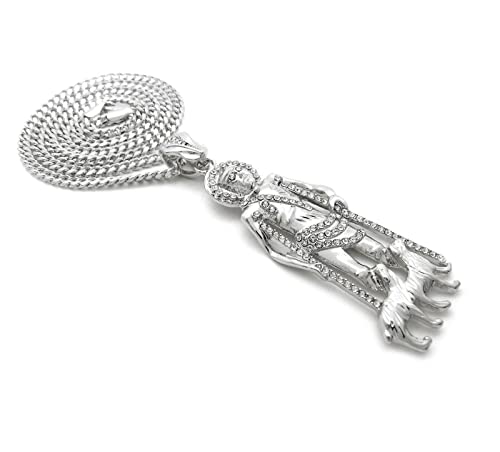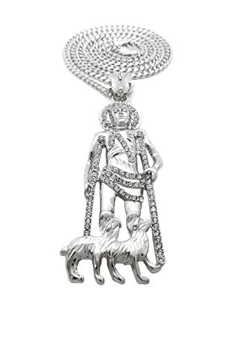 Gold Silver Plated Iced SAN LAZARO Pendant & 4mm 18" 20" 24" Cuban Chain Hip Hop Jewelry Necklace 6