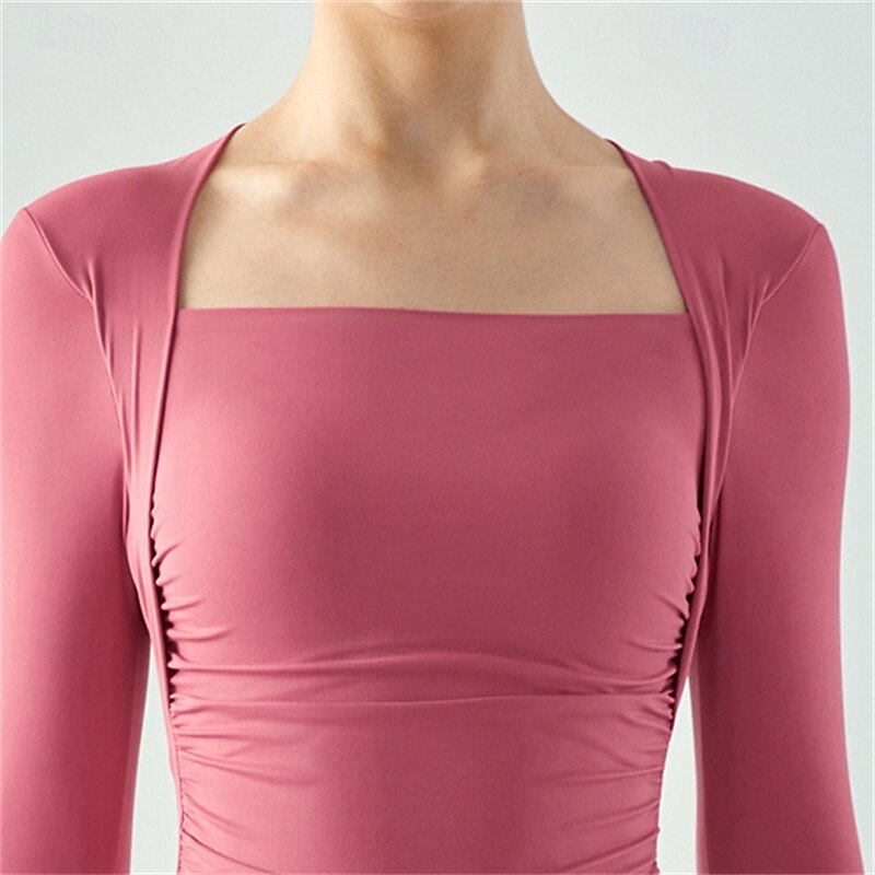 Women's Sports shirts Square Neckline Skin Friendly Softness Breathable Pleats Long Sleeve Sports Solid Color Top For Pilates Yoga Activewear 5