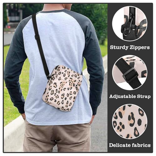 messenger bag mens shoulder bag Casual Purse Cross Body Adjustable Strap for Shopping Shopping- Beige Leopard 1