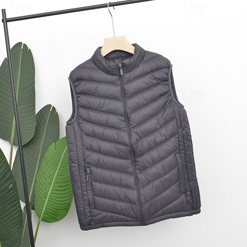 More information about Men's Puffer Vest Vest Gilet Vacation Daily Date Fashion Casual Winter Pocket Polyester Warm Comfortable Solid Color Zipper Stand Collar Regular Fit Black Navy Blue Gray Vest