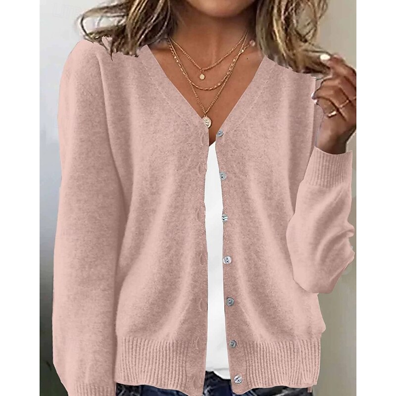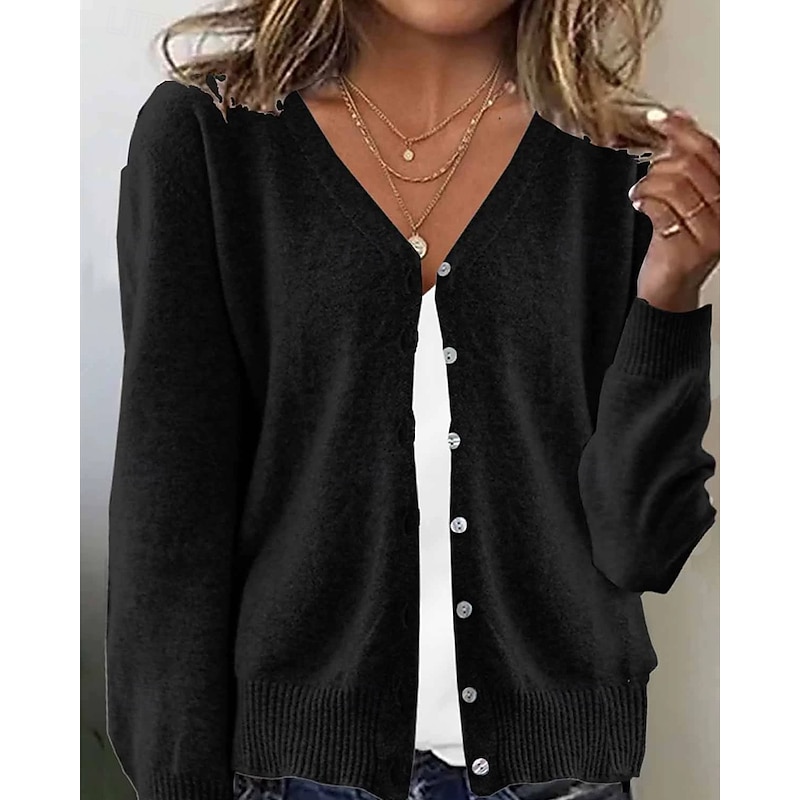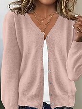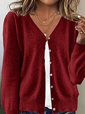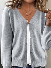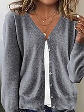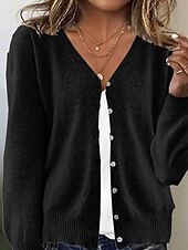 More information about Women's Cardigan Vintage Daily Vintage Style Solid Color Ribbed V Neck Buttons Knitted Long Sleeve Regular Tops Knit Outdoor Daily Black White Fall Winter