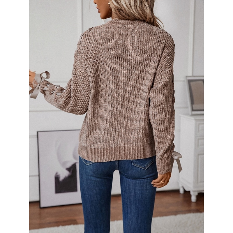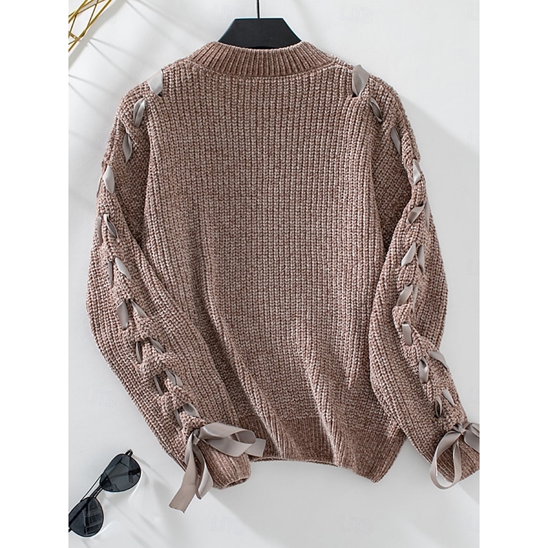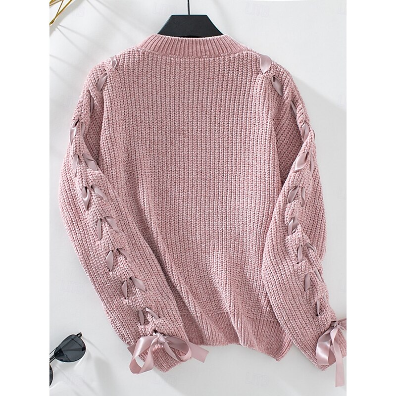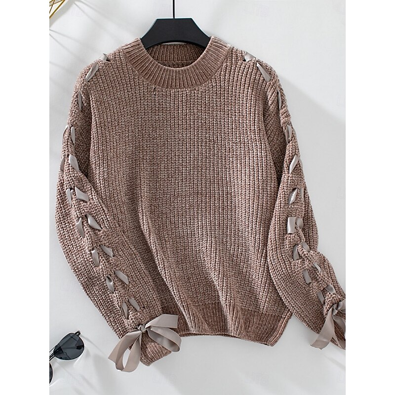 More information about Women's Sweater Casual Soft Pure Color Ribbed Crew Neck Patchwork Knitted Long Sleeve Regular Tops Knit Outdoor Daily Weekend Pink Khaki Fall Winter
