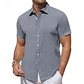 More information about Men's Shirt Summer Shirt Casual Shirt Beach Shirt Button Up Shirt Black White Pink Blue Green Short Sleeve Plain Lapel Vacation Hawaiian Clothing Apparel Polyester Fashion Casual Comfortable