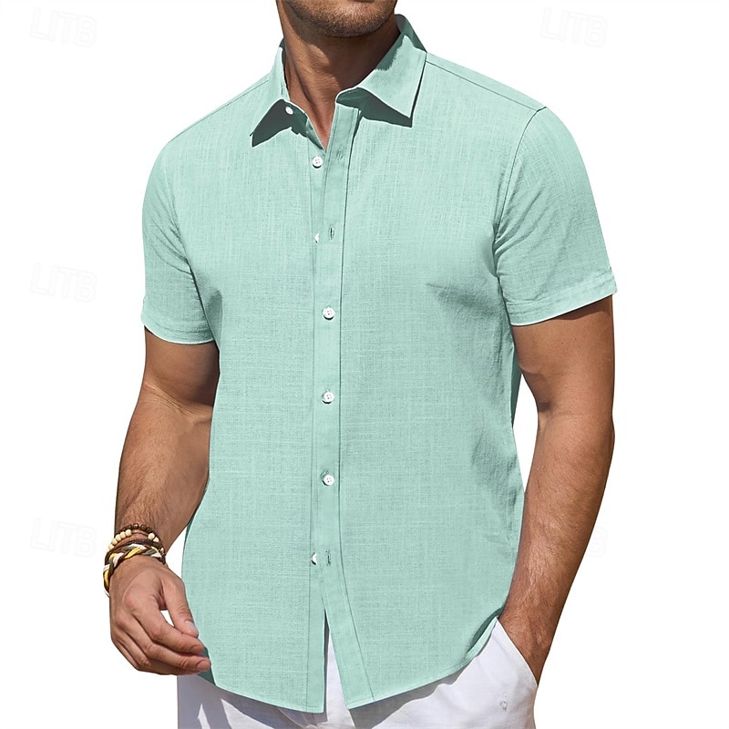 Men's Shirt Summer Shirt Casual Shirt Beach Shirt Button Up Shirt Black White Pink Blue Green Short Sleeve Plain Lapel Vacation Hawaiian Clothing Apparel Polyester Fashion Casual Comfortable 7
