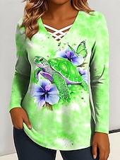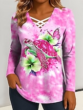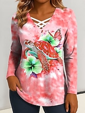 More information about Women's T Shirt Graphic Animal Sea Turtle Vintage Stylish Classic Long Sleeve V Neck Regular Tops Daily Cut Out Print Red Blue Fuchsia Green Spring Fall