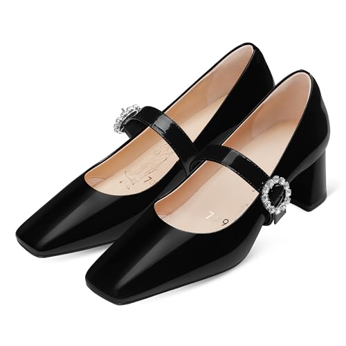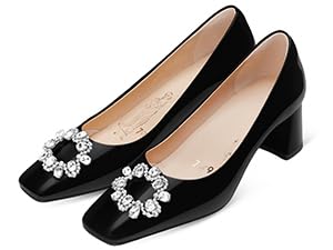 • Premium Material - This classic pump is made of soft and high-quality patent leather as upper with breathable lambskin insole. The 2-inch square toe block heels let you walk gracefully and freely.
