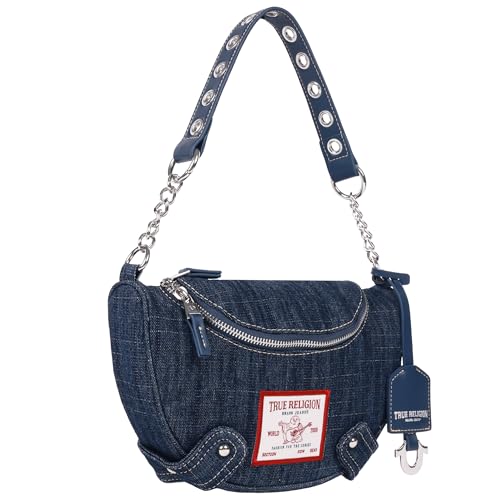 More information about True Religion Hobo Shoulder Bag Purse, Denim Travel Handbag with Chain Strap, Light Blue