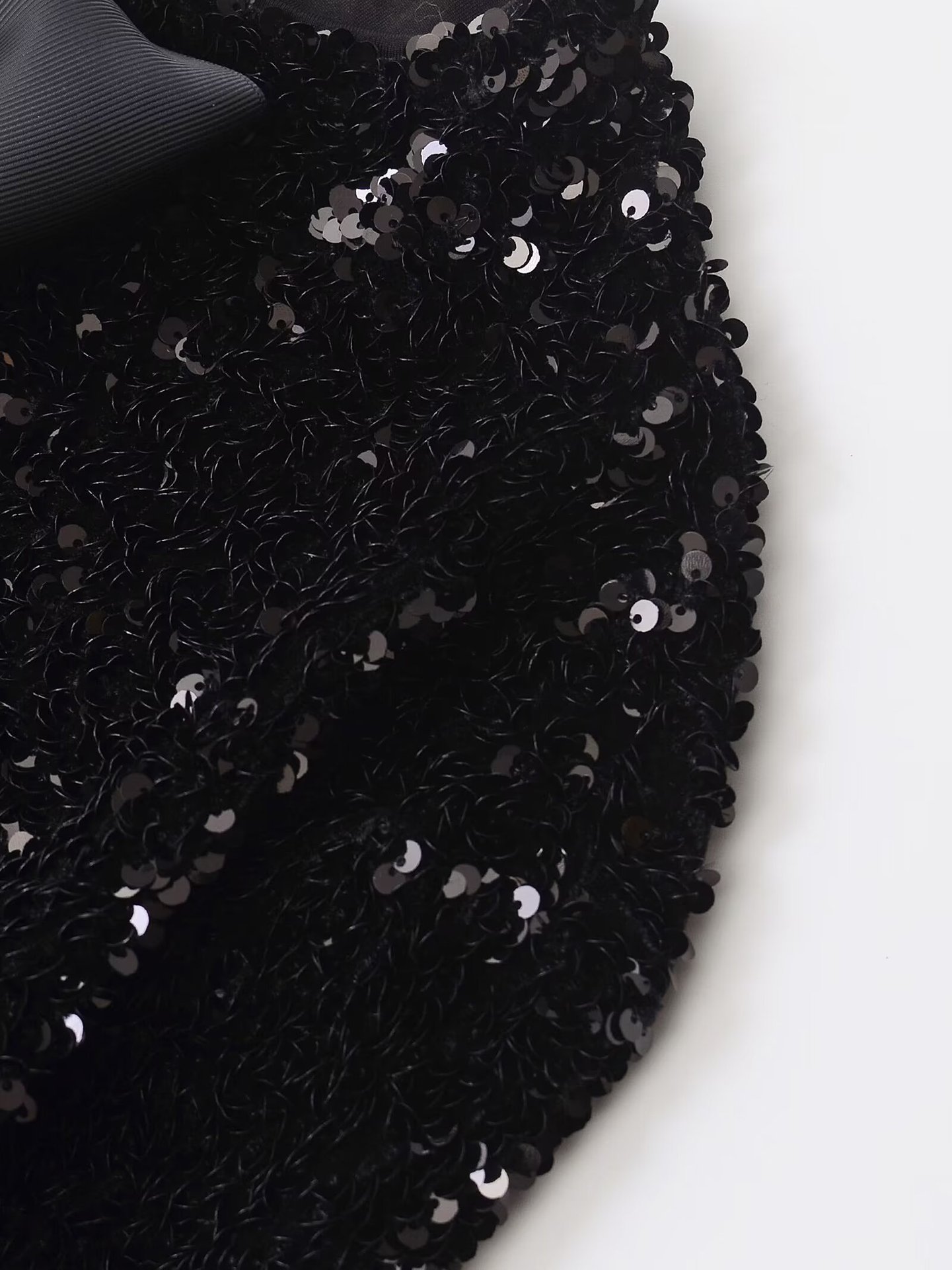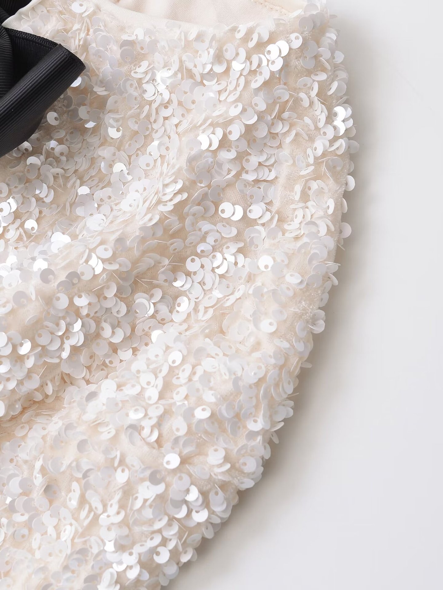R.Vivimos Women's Long Sleeve Crop Tops Fall Winter Sequin Bow Tie Glitter Fashion Casual Tops Blouses 3
