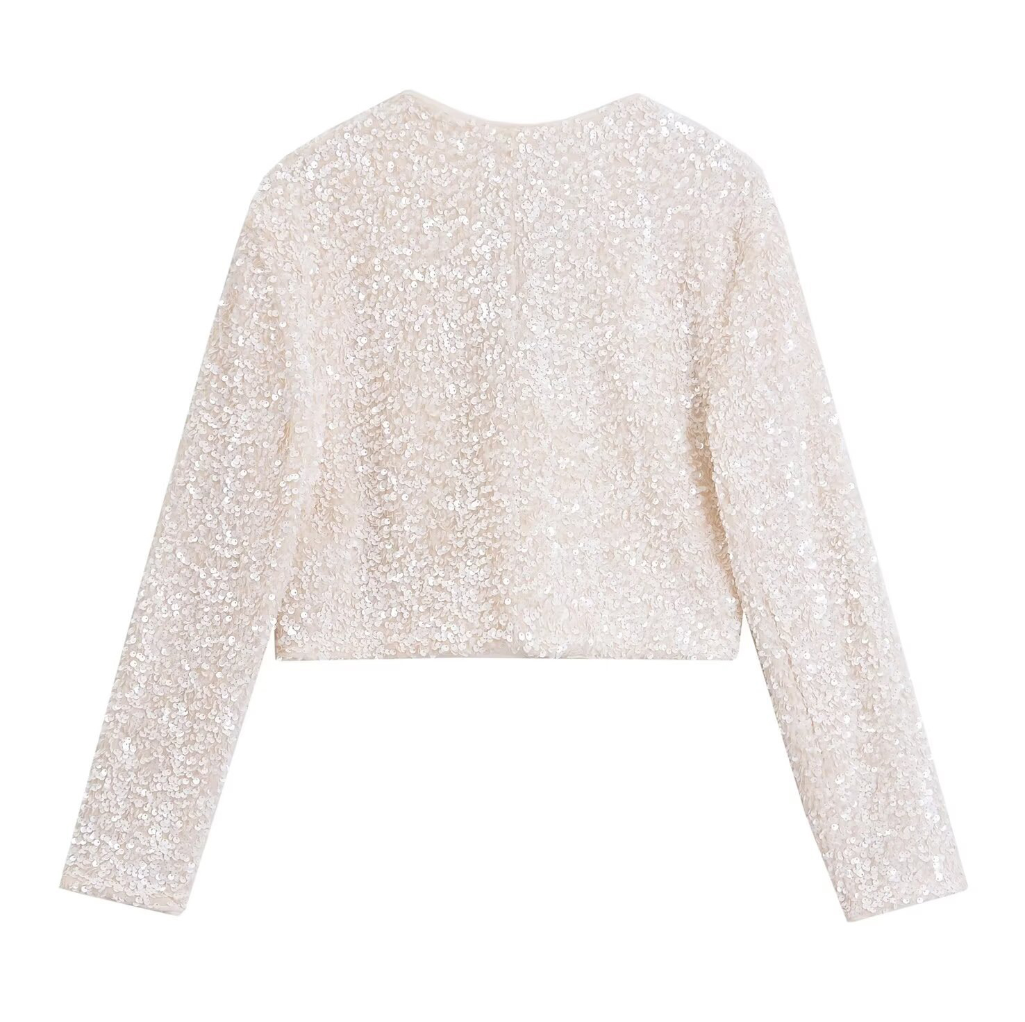 R.Vivimos Women's Long Sleeve Crop Tops Fall Winter Sequin Bow Tie Glitter Fashion Casual Tops Blouses 2