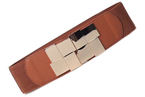 More information about Womens Elasticity Stretch Gold-Plated Buckle Dress Waist Belt,Width 2.3inch(6cm) (Camel)