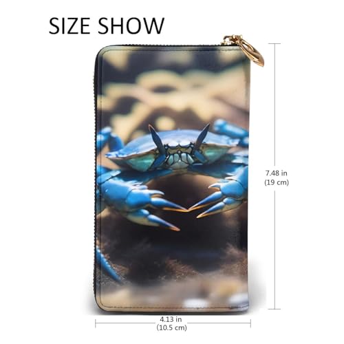 HOT ! Leather Wallet - Stylish and Durable Wallet for Women with Multiple Compartments and Zipper Design Big Sea Blue Crab Picture