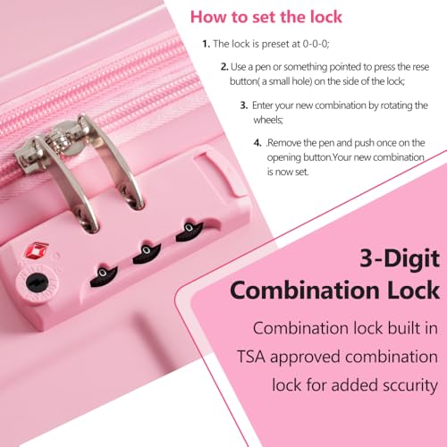 More information about Lightweight ABS Hardshell Luggage Set 28 Inch Expandable Checked Suitcase with Double Wheels Durable Travel Luggage (28Inch Pink)