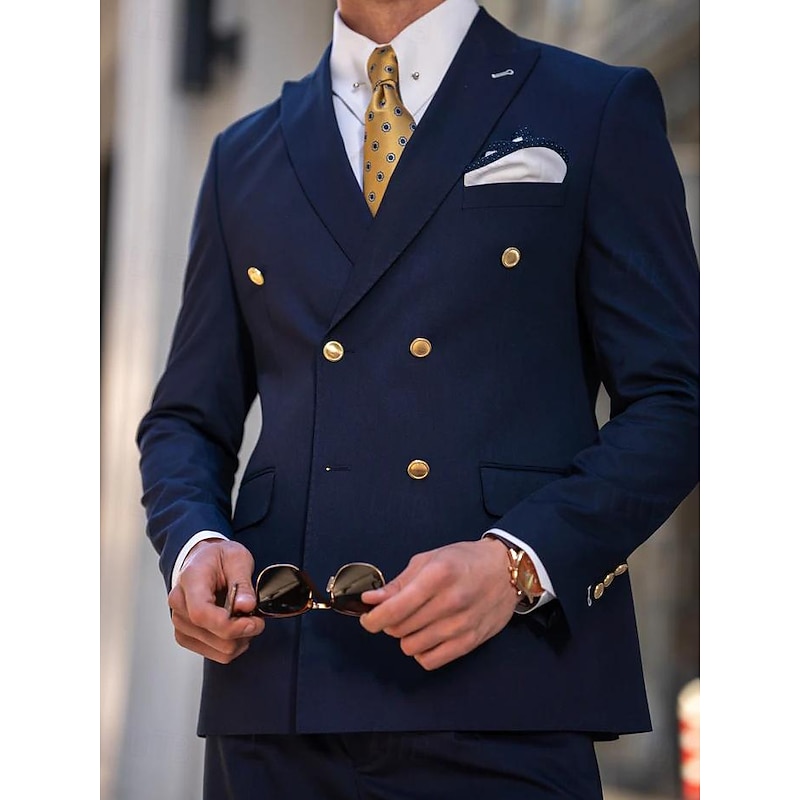 More information about Men's Wedding Party Suits Dark Blue Business Formal Solid Colored Tailored Fit 2 Piece Double Breasted Six-buttons