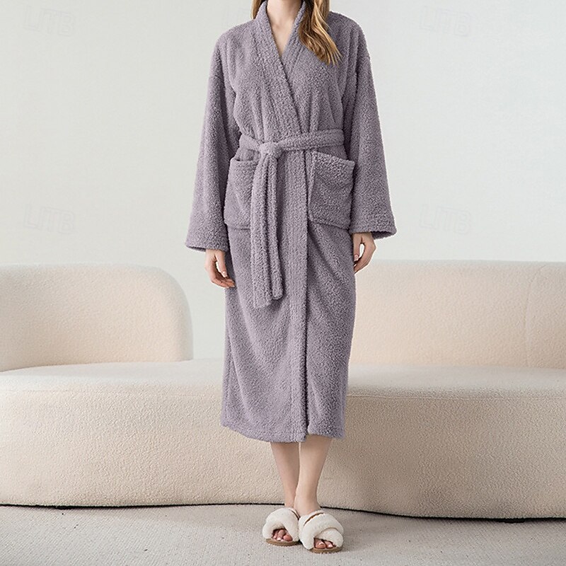 Women's Pajamas Robe Fashion Pure Color Pocket Vacation Home Bed Long Sleeve V Neck Navy Blue Purple Brown Beige Gray Fall Winter Tailored Fit 6