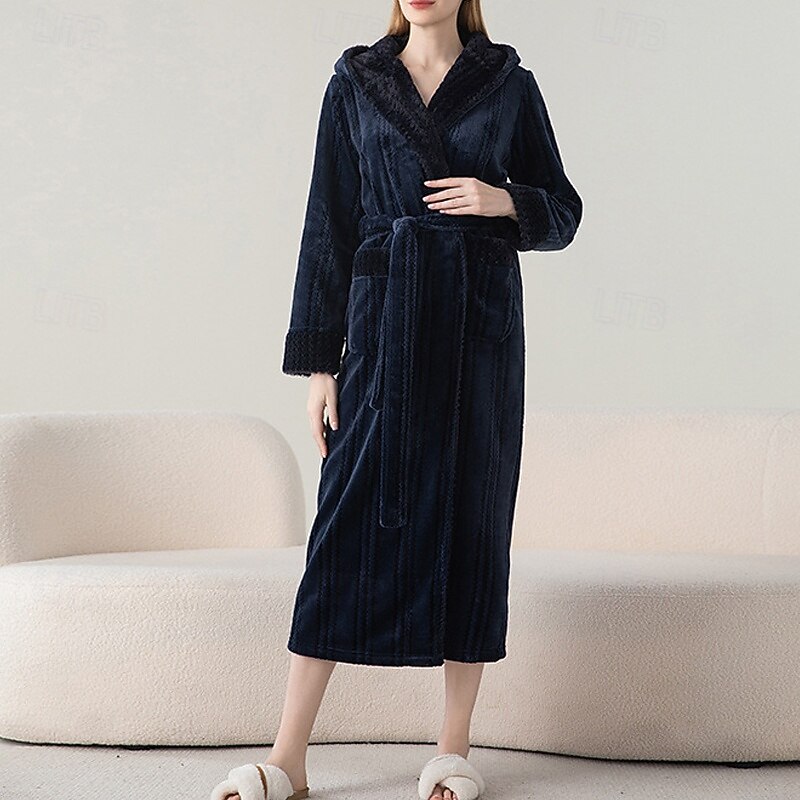 More information about Women's Pajamas Robe Fashion Pure Color Pocket Vacation Home Bed Long Sleeve V Neck Navy Blue Purple Brown Beige Gray Fall Winter Tailored Fit