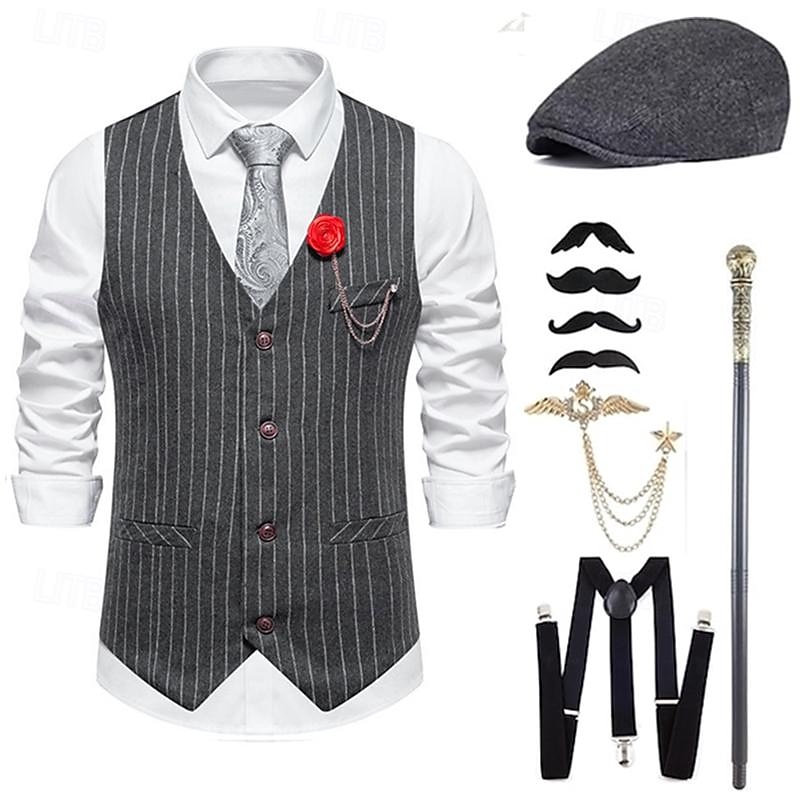 Retro Vintage Roaring 20s 1920s Hat Outfits Vest The Great Gatsby Gentleman Fashion Fancy Dress Men's Christmas Halloween Carnival Prom Bachelorette Party Festival Adults' Cravat Vest More Accessories 17