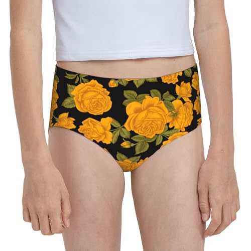 Vintage Flowers Yellow Roses Girls' Underwear Soft Cotton Little Girls Panties Comfort Briefs 7