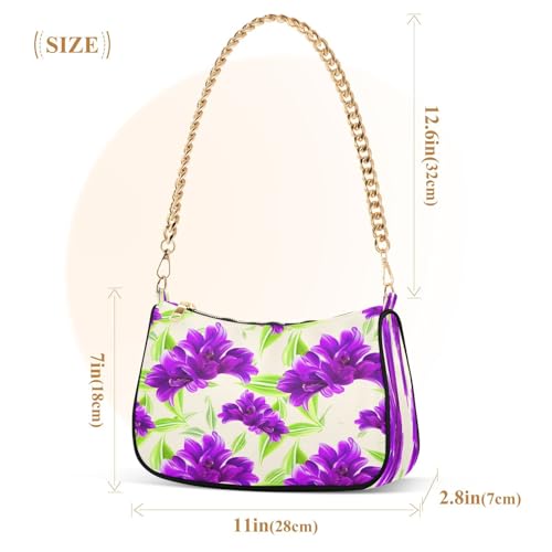 Shoulder Bags for Women Purple Flowers Tote HandBag Shoulder Bags purse with Chain Zipper Closure 5