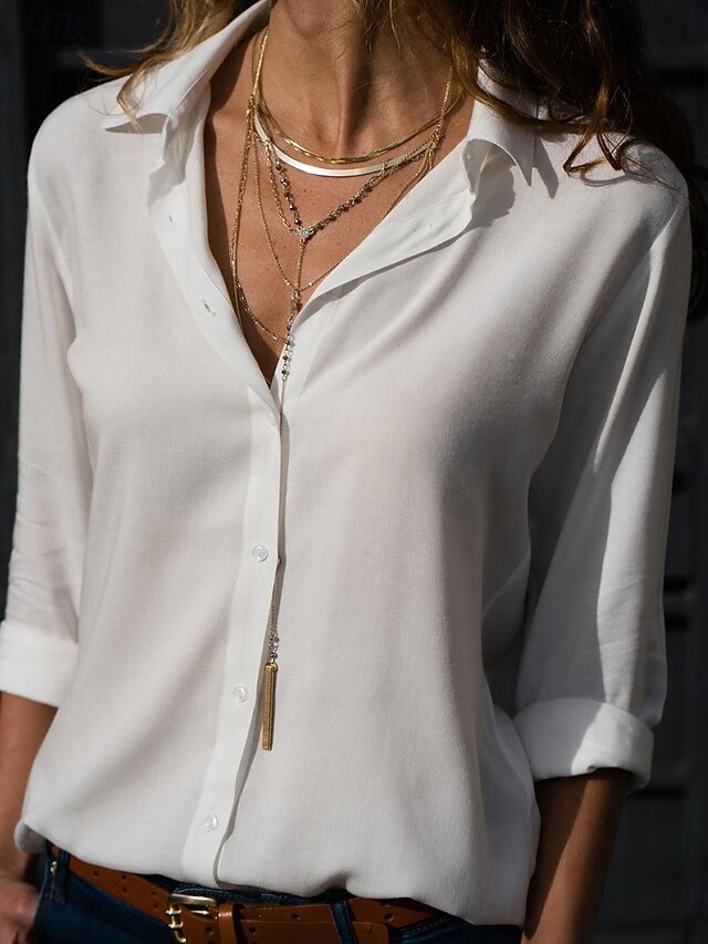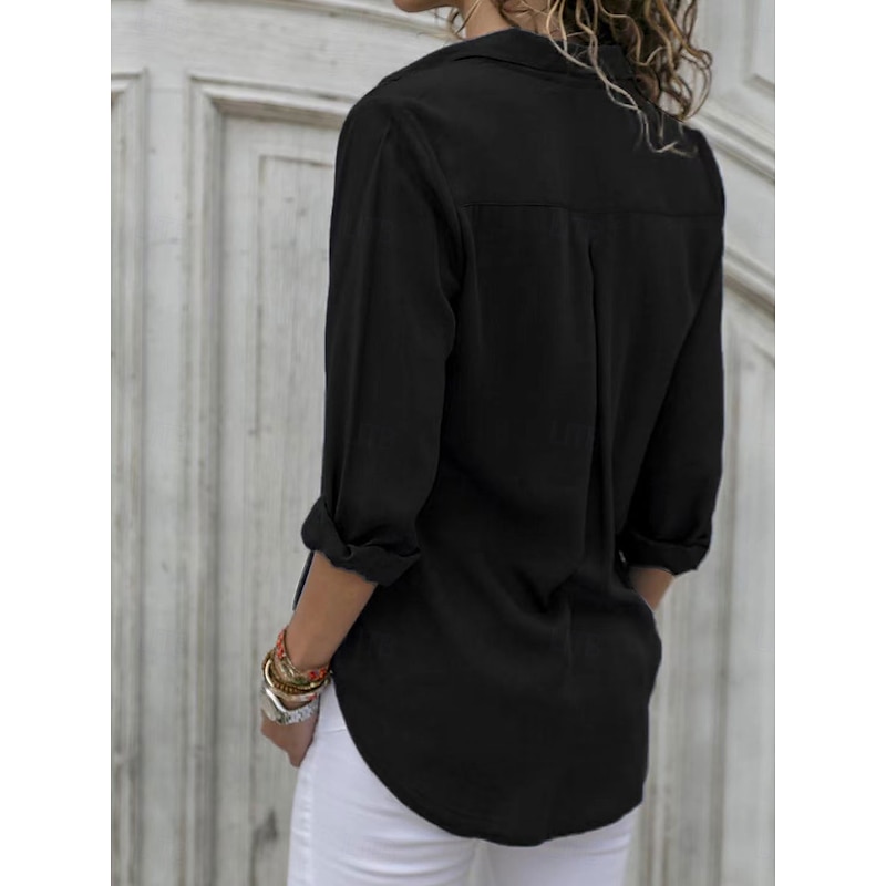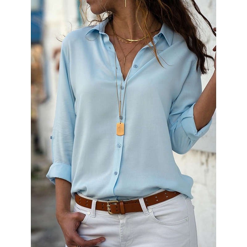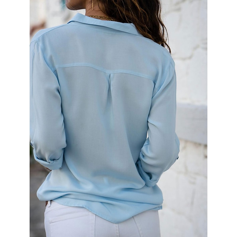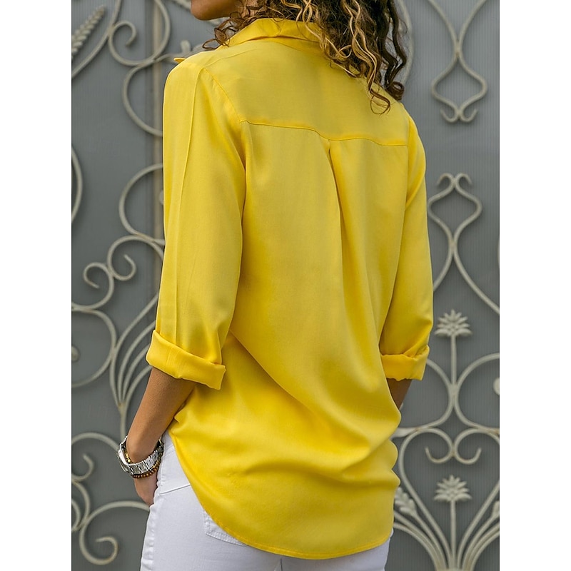 More information about Women's Shirt Button Down Blouse Solid Color Stylish Basic Casual Long Sleeve Shirt Button Down Blouse Collar Regular Tops Work Daily Buttons Black White Yellow Light Blue Summer Spring
